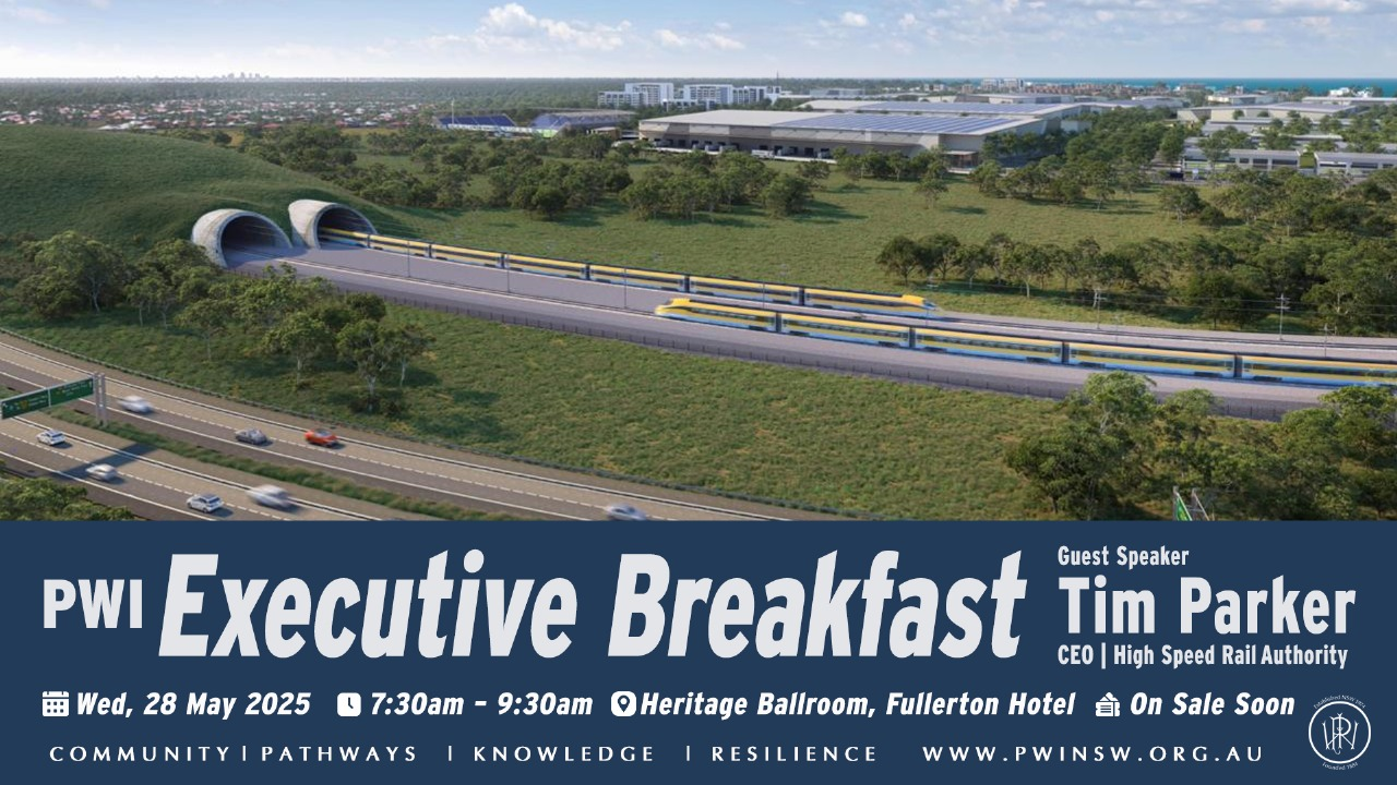 PWI is pleased to announce their next Executive Breakfast featuring Tim Parker, CEO of the High Speed Rail Authority (Australia). This presents a rare and valuable opportunity to hear directly from one of the most influential figures in the rail industry as he shares exclusive insights into the current and future direction of High Speed Rail in Australia.